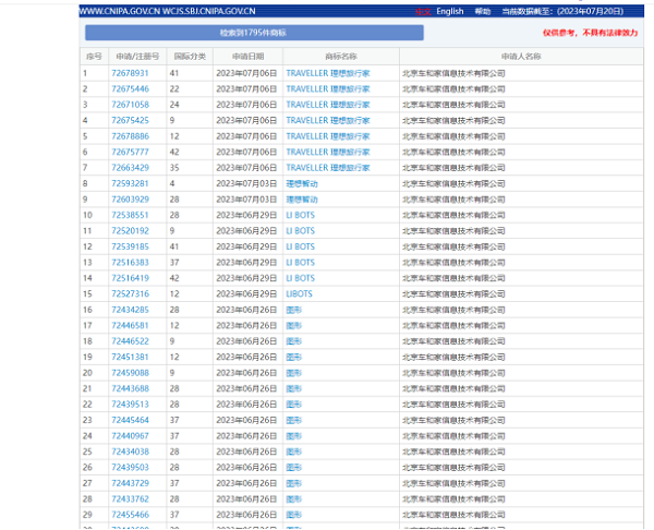 理想汽车是与2015年成立的一家新能源汽车公司,从成立年份上来说,理想汽车晚于理想汽车贴膜工厂,但在“理想”这个品牌保护上,理想汽车确实占了先机,最早在2013来就开始申请“理想”相关的商标了,至今已经提交注册了1000多件相关商标。