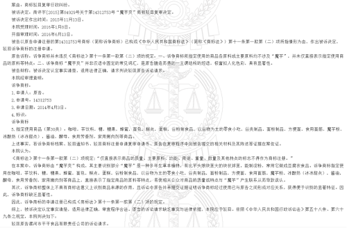 后于2019年以漯河市卫龙商贸有限公司名义申请注册同类同名魔芋爽商标均被驳回,且理由均为:诉争商标指定使用在咖啡,茶饮料,糖,糖果,蜂蜜,面包,糕点,蛋糕,谷粉制食品,以谷物为主的零食小吃,谷类制品,面粉制品,方便面,食用面筋,魔芋粉,冻酸奶(冰冻甜点),酱油,酵母,食用芳香剂,家用嫩肉剂等商品上,直接表示了指定商品的原料等特点,易使相关公众对商品的质量或特点与“魔芋”产生联系从而导致误认。