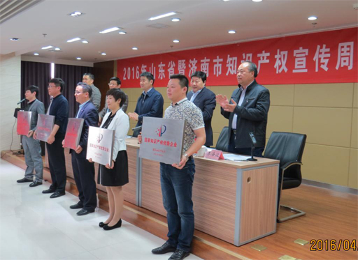 4月20日上午,2016年山东省暨济南市知识产权宣传周启动仪式在华强国际广场举行,省知识产权局局长于智勇、历下区政府副区长张谨国、历下区科技局局长杨锋等出席。