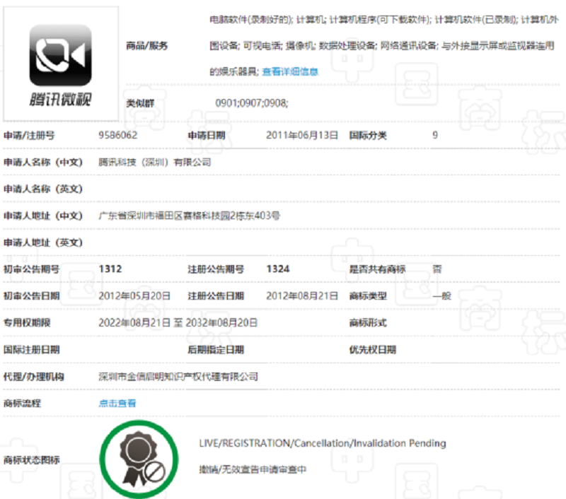 腾讯公司于2011年曾申请了“腾讯微视”等系列商标,注册在第9类-科学仪器这一核心类别。然而,腾讯“微视”系列商标遭遇了无效宣告。